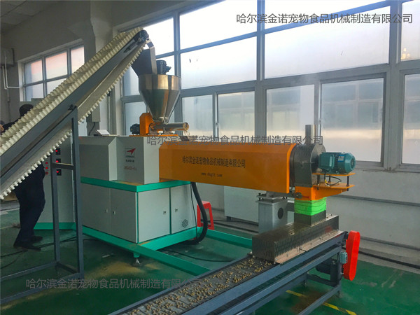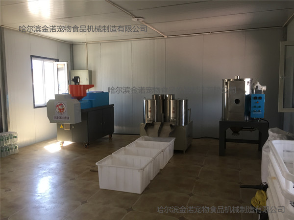 狗糧加工設備JNK200-T5M:1。JNK200-T5M型狗糧加工設備安裝方便、出廠已經(jīng)試機,狗糧機切刀采用直角切刀技術,調試簡單;2。狗糧設備的主軸和切刀小軸均可隨時注入耐高溫潤滑脂,延長狗糧機的軸承使用壽命;3。JNK200-T5M狗糧設備每小時生產狗糧顆粒200公斤。